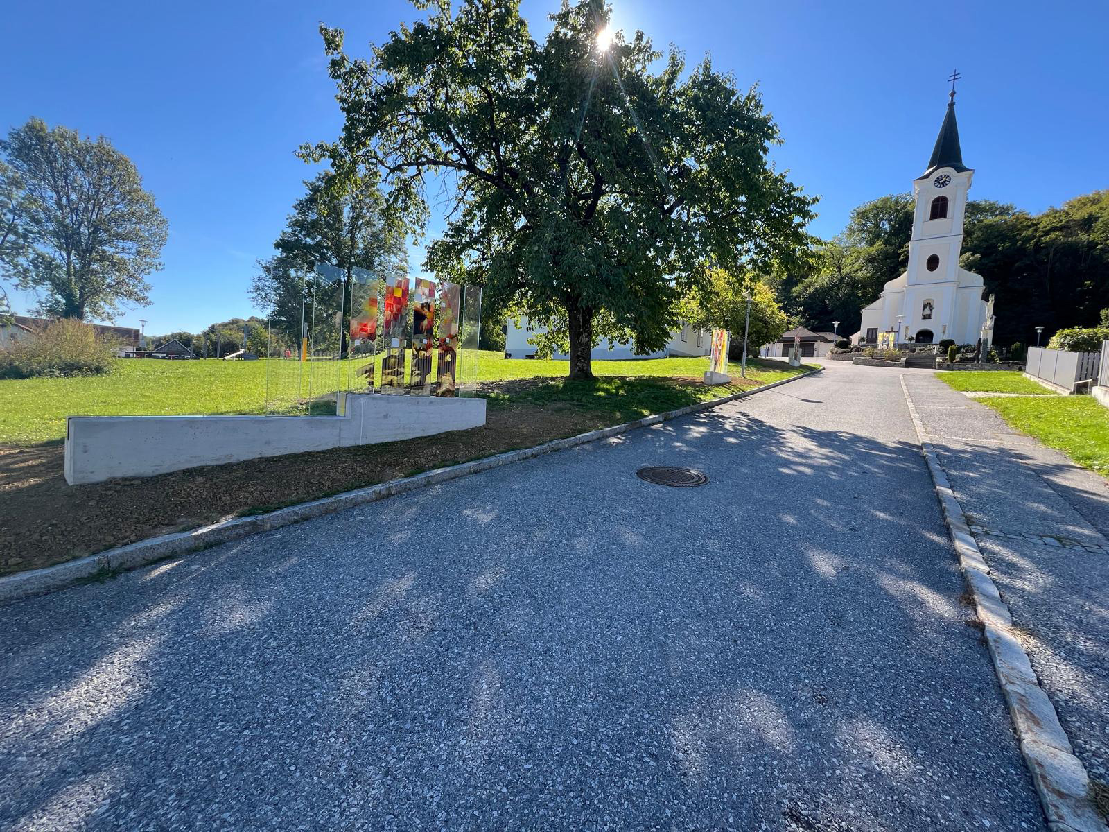 2025 – Für den Weg zur Pfarrkirche Jabing gestaltet Heinz Ebner in sieben begehbaren Stationen den „Lebensweg“ – ein auf Basis des Leidensweges Jesu Christi interpretierter Meditationsweg.